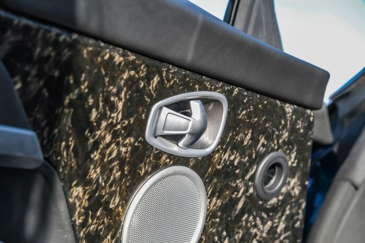 Door panel insert: Leather and metal-look door panel insert
