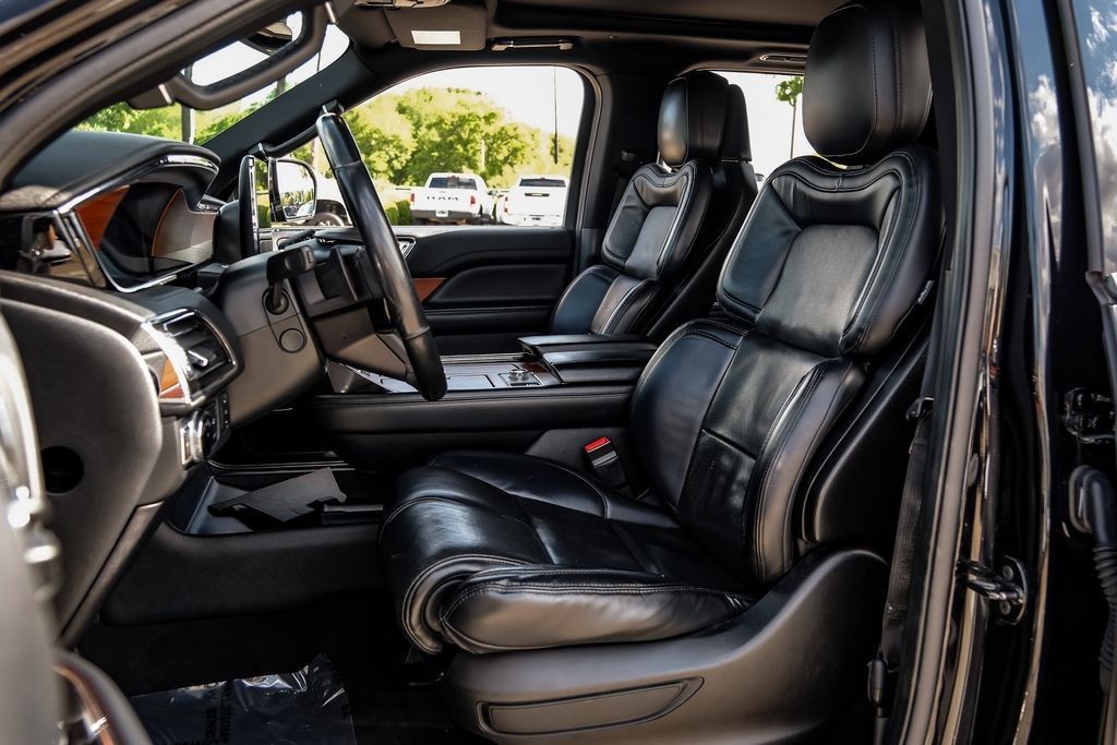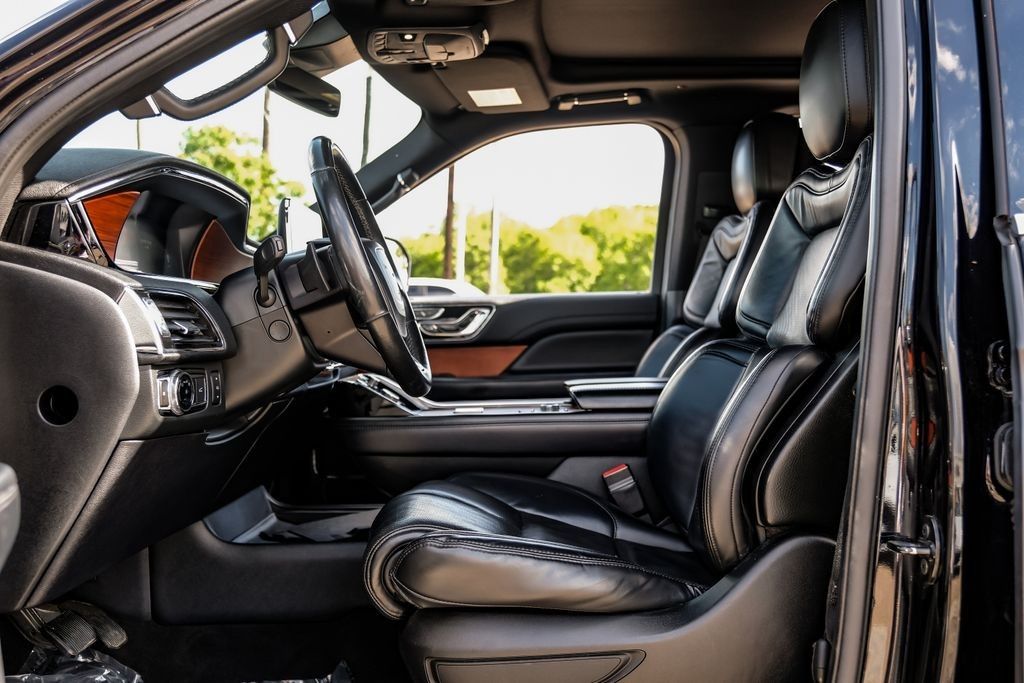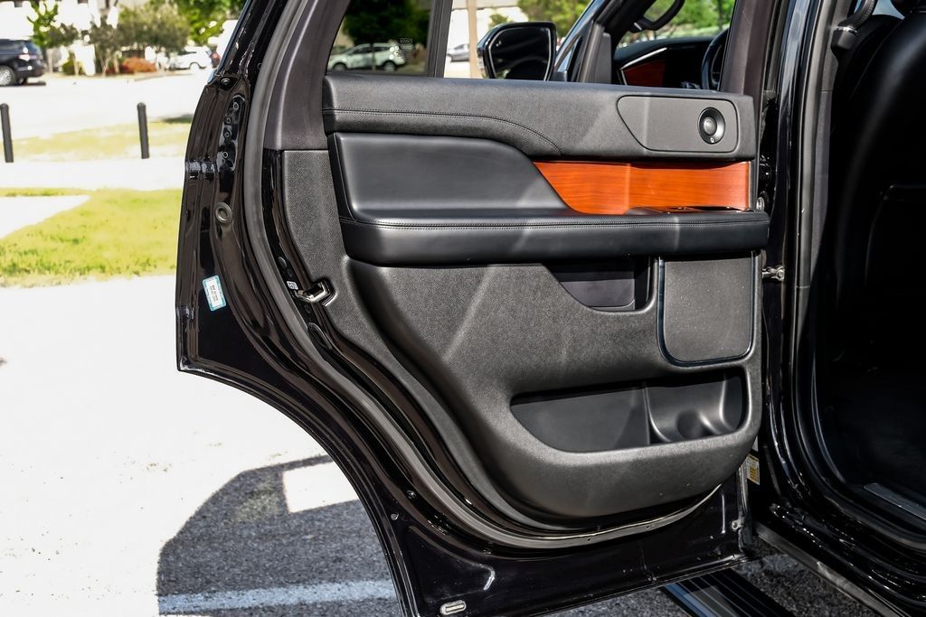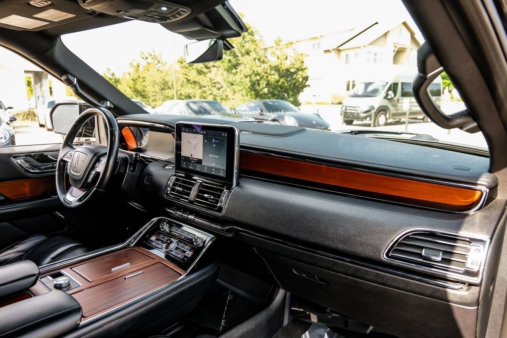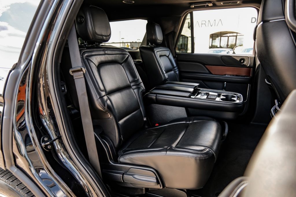 Black 2020 Lincoln Navigator Reserve RWD 10-Speed Automatic V6 Ebony Leather, 14 Speakers, 3rd row seats: split-bench, 4-Wheel Disc Brakes, ABS brakes, Adaptive suspension, Adjustable pedals, Air Conditioning, AM/FM radio: SiriusXM, Audio memory, Auto High-beam Headlights, Auto tilt-away steering wheel, Auto-dimming door mirrors, Auto-dimming Rear-View mirror, Auto-leveling suspension, Automatic temperature control, Bodyside moldings, Brake assist, Bumpers: body-color, Compass, Delay-off headlights, Driver door bin, Driver vanity mirror, Driver's Seat Mounted Armrest, Dual front impact airbags, Dual front side impact airbags, Electronic Stability Control, Emergency communication system: 911 Assist, Equipment Group 200A Reserve, Exterior Parking Camera Rear, Four wheel independent suspension, Front anti-roll bar, Front Bucket Seats, Front dual zone A/C, Front fog lights, Front License Plate Bracket, Front reading lights, Fully automatic headlights, Garage door transmitter, Genuine wood dashboard insert, Genuine wood door panel insert, GVWR: 7,350 lbs Payload Package, Head restraints memory, Heads-Up Display, Heated door mirrors, Heated front seats, Heated rear seats, Heated steering wheel, HVAC memory, Illuminated entry, Knee airbag, Leather steering wheel, Low tire pressure warning, Memory seat, Navigation System, Occupant sensing airbag, Outside temperature display, Overhead airbag, Overhead console, Panic alarm, Passenger door bin, Passenger seat mounted armrest, Passenger vanity mirror, Pedal memory, Power adjustable rear head restraints, Power door mirrors, Power driver seat, Power Liftgate, Power moonroof: Panoramic Vista Roof, Power passenger seat, Power steering, Power windows, Premium Lthr Htd/Ventilated Low Back Comfort Seats, Radio data system, Radio: Revel AM/FM/HD/MP3 Audio System, Rain sensing wipers, Rear air conditioning, Rear anti-roll bar, Rear audio controls, Rear reading lights, Rear window defroster, Rear window wiper, Reclining 3rd row seat, Remote keyless entry, Roof rack: rails only, Security system, SiriusXM Radio, Speed control, Speed-sensing steering, Speed-Sensitive Wipers, Split folding rear seat, Spoiler, Steering wheel memory, Steering wheel mounted audio controls, SYNC 3 Communications & Entertainment System, Tachometer, Telescoping steering wheel, Tilt steering wheel, Traction control, Trip computer, Turn signal indicator mirrors, Variably intermittent wipers, Ventilated front seats, Voice-Activated Touchscreen Navigation System, Wheels: 22" 12-Spoke Ultra Bright Machined Alum.Recent Arrival!Awards: * JD Power Automotive Performance, Execution and Layout (APEAL) Study