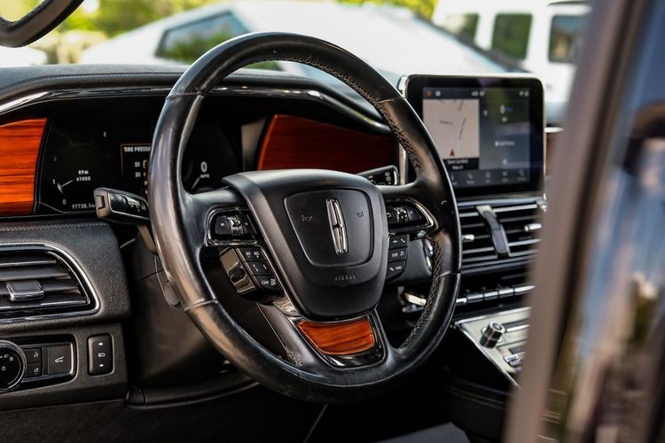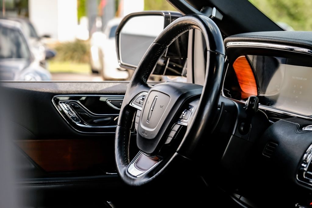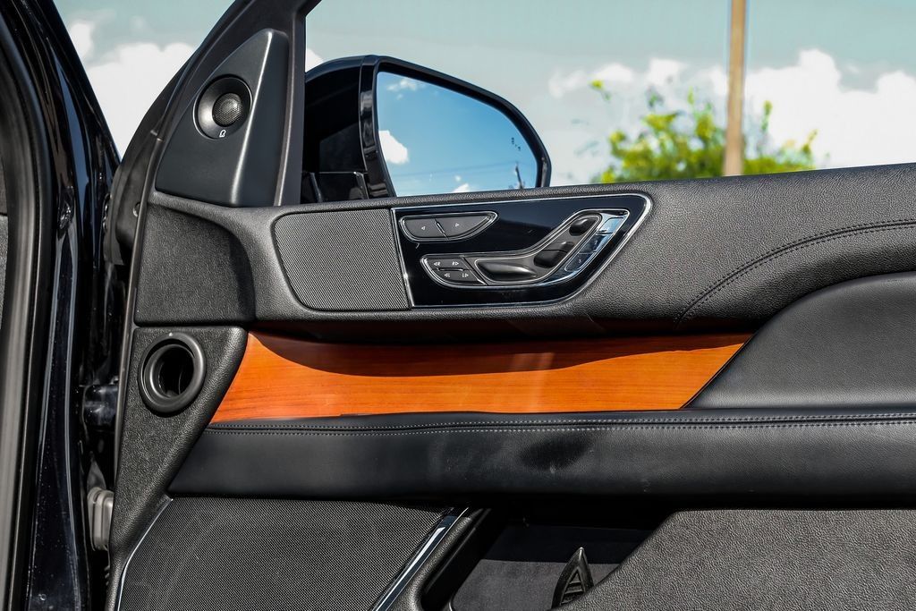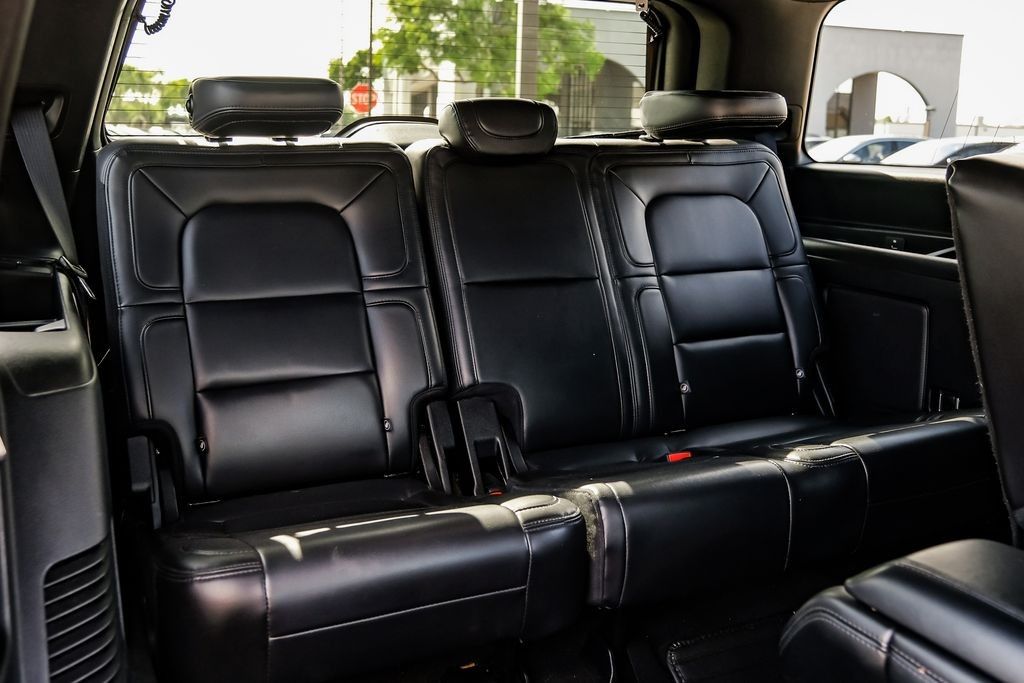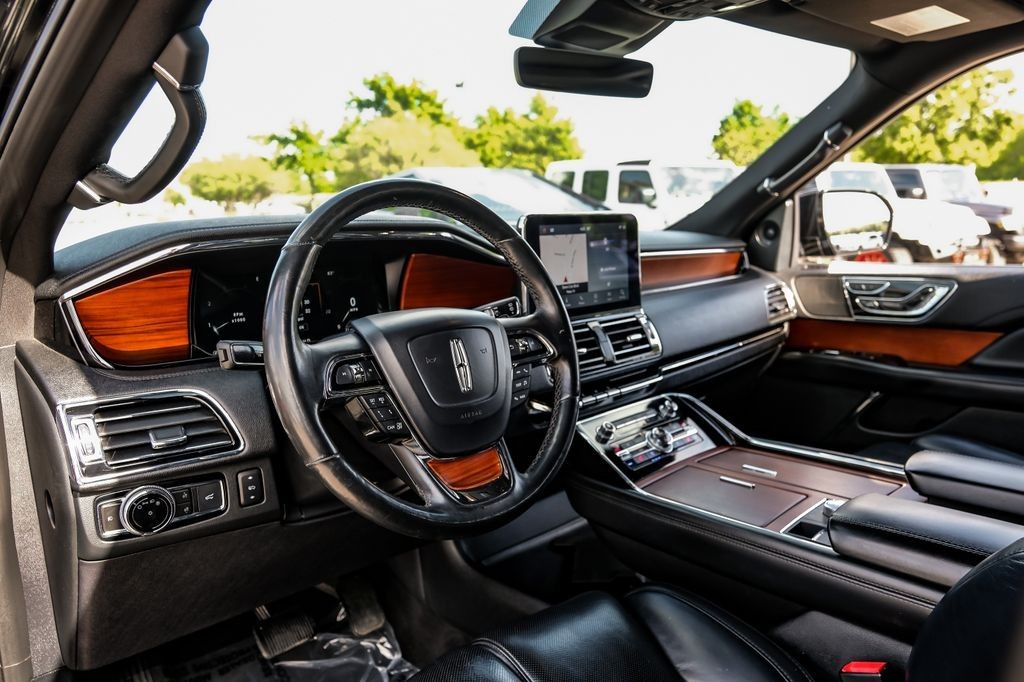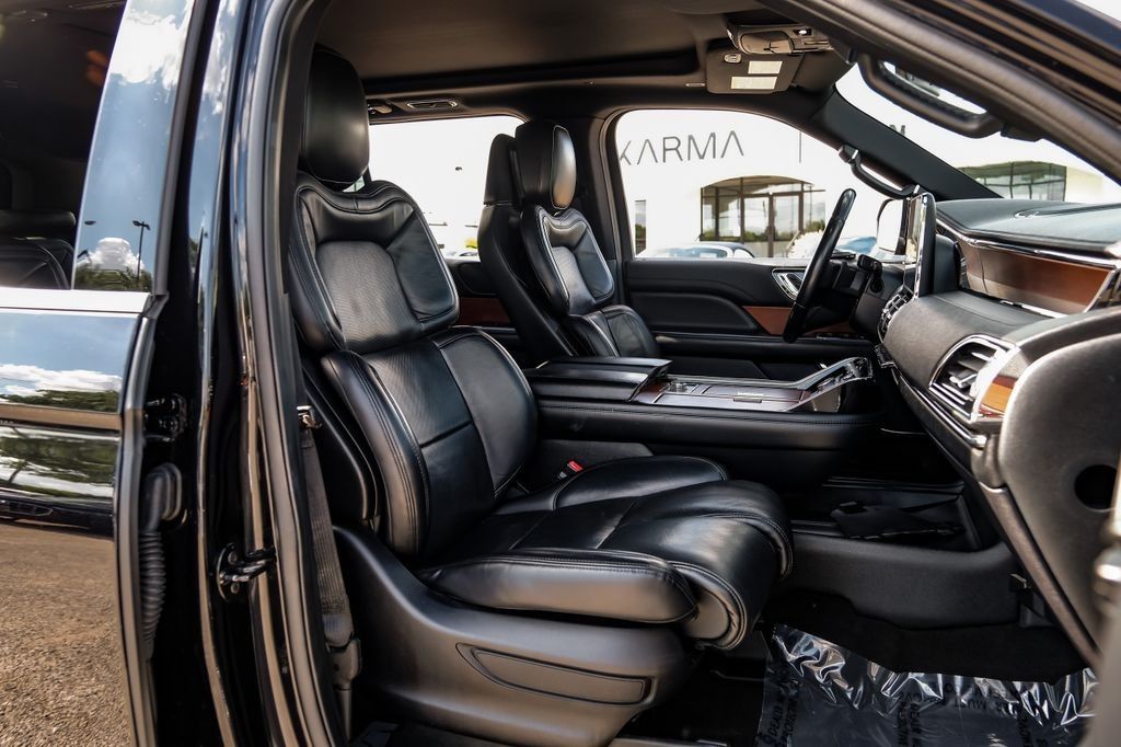 Black 2020 Lincoln Navigator Reserve RWD 10-Speed Automatic V6 Ebony Leather, 14 Speakers, 3rd row seats: split-bench, 4-Wheel Disc Brakes, ABS brakes, Adaptive suspension, Adjustable pedals, Air Conditioning, AM/FM radio: SiriusXM, Audio memory, Auto High-beam Headlights, Auto tilt-away steering wheel, Auto-dimming door mirrors, Auto-dimming Rear-View mirror, Auto-leveling suspension, Automatic temperature control, Bodyside moldings, Brake assist, Bumpers: body-color, Compass, Delay-off headlights, Driver door bin, Driver vanity mirror, Driver's Seat Mounted Armrest, Dual front impact airbags, Dual front side impact airbags, Electronic Stability Control, Emergency communication system: 911 Assist, Equipment Group 200A Reserve, Exterior Parking Camera Rear, Four wheel independent suspension, Front anti-roll bar, Front Bucket Seats, Front dual zone A/C, Front fog lights, Front License Plate Bracket, Front reading lights, Fully automatic headlights, Garage door transmitter, Genuine wood dashboard insert, Genuine wood door panel insert, GVWR: 7,350 lbs Payload Package, Head restraints memory, Heads-Up Display, Heated door mirrors, Heated front seats, Heated rear seats, Heated steering wheel, HVAC memory, Illuminated entry, Knee airbag, Leather steering wheel, Low tire pressure warning, Memory seat, Navigation System, Occupant sensing airbag, Outside temperature display, Overhead airbag, Overhead console, Panic alarm, Passenger door bin, Passenger seat mounted armrest, Passenger vanity mirror, Pedal memory, Power adjustable rear head restraints, Power door mirrors, Power driver seat, Power Liftgate, Power moonroof: Panoramic Vista Roof, Power passenger seat, Power steering, Power windows, Premium Lthr Htd/Ventilated Low Back Comfort Seats, Radio data system, Radio: Revel AM/FM/HD/MP3 Audio System, Rain sensing wipers, Rear air conditioning, Rear anti-roll bar, Rear audio controls, Rear reading lights, Rear window defroster, Rear window wiper, Reclining 3rd row seat, Remote keyless entry, Roof rack: rails only, Security system, SiriusXM Radio, Speed control, Speed-sensing steering, Speed-Sensitive Wipers, Split folding rear seat, Spoiler, Steering wheel memory, Steering wheel mounted audio controls, SYNC 3 Communications & Entertainment System, Tachometer, Telescoping steering wheel, Tilt steering wheel, Traction control, Trip computer, Turn signal indicator mirrors, Variably intermittent wipers, Ventilated front seats, Voice-Activated Touchscreen Navigation System, Wheels: 22" 12-Spoke Ultra Bright Machined Alum.Recent Arrival!Awards: * JD Power Automotive Performance, Execution and Layout (APEAL) Study
