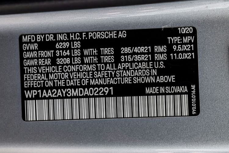 2021 Porsche Cayenne AWD 8-Speed Automatic with Tiptronic 3.0L V6 Leather, 10 Speakers, 14-Way Power Seats w/Memory Package, 4-Wheel Disc Brakes, 8-Way Power Seats, ABS brakes, Adaptive suspension, Air Conditioning, Alloy wheels, AM/FM radio: SiriusXM, Ambient Lighting, Apple CarPlay, Automatic temperature control, Automatically Dimming Mirrors, Brake assist, Bumpers: body-color, Comfort Access, Delay-off headlights, Driver door bin, Driver vanity mirror, Dual front impact airbags, Dual front side impact airbags, Electronic Stability Control, Exterior Parking Camera Rear, Four wheel independent suspension, Front anti-roll bar, Front Bucket Seats, Front Center Armrest, Front dual zone A/C, Front reading lights, Fully automatic headlights, Garage door transmitter: HomeLink, Heated door mirrors, Heated Front Seats, Illuminated entry, Knee airbag, Lane Change Assist (LCA), Leather Shift Knob, LED Headlights w/PDLS, Low tire pressure warning, Navigation System, Occupant sensing airbag, Outside temperature display, Overhead airbag, Overhead console, Panic alarm, Panoramic Roof System, Partial Leather Seat Trim, Passenger door bin, Passenger vanity mirror, Porsche Communication Management, Power door mirrors, Power driver seat, Power Liftgate, Power passenger seat, Power steering, Power Steering Plus, Power windows, Premium Package, Radio data system, Rain sensing wipers, Rear anti-roll bar, Rear fog lights, Rear reading lights, Rear seat center armrest, Rear side impact airbag, Rear window defroster, Rear window wiper, Remote keyless entry, Security system, Speed control, Split folding rear seat, Spoiler, Steering wheel mounted audio controls, Tachometer, Telescoping steering wheel, Tilt steering wheel, Traction control, Trip computer, Turn signal indicator mirrors, Variably intermittent wipers, Voltmeter, Wheels: 19" Cayenne.Recent Arrival!