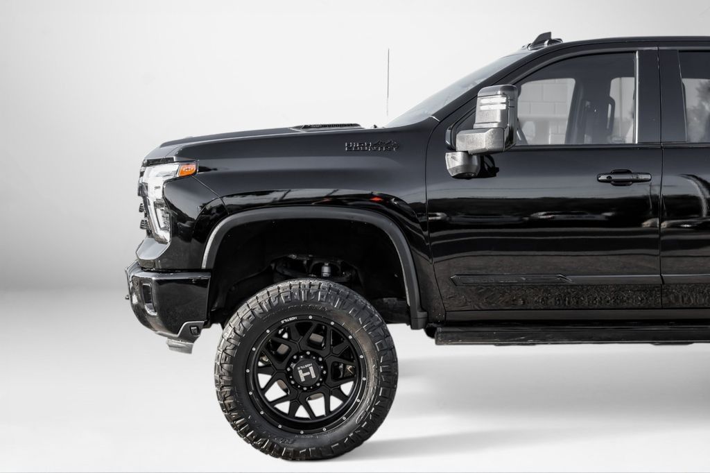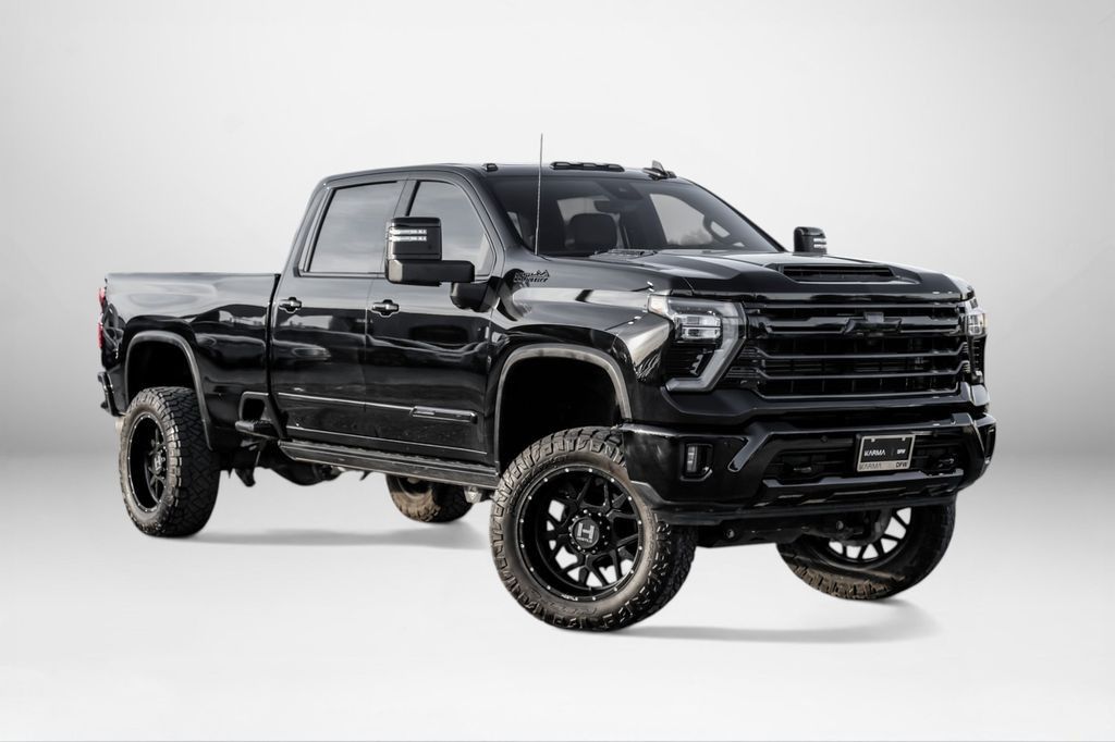 LIFTED!!! Black 2024 Chevrolet Silverado 2500HD High Country 4WD 10-Speed Automatic Duramax 6.6L V8 Turbodiesel 10-Speed Automatic, 4WD, Jet Black/Umber Leather, 10-Way Power Driver Seat Adjuster w/Lumbar, 10-Way Power Passenger Seat Adjuster w/Lumbar, 120-Volt Bed Mounted Power Outlet, 120-Volt Interior Power Outlet, 15" Diagonal Multicolor Head-Up Display, 170 Amp Alternator, 220 Amp Alternator, 4-Wheel Disc Brakes, 6" Rectangular Chromed Tubular Assist Steps, ABS brakes, Adaptive Cruise Control, Air Conditioning, Alloy wheels, AM/FM radio: SiriusXM with 360L, Apple CarPlay/Android Auto, Auto High-beam Headlights, Auto-dimming door mirrors, Auto-Dimming Inside Rear-View Mirror, Auto-dimming Rear-View mirror, Automatic temperature control, Bed View Camera w/2 Trailer Camera Provisions, Black Chevytec Spray-On Bedliner, Bluetooth® For Phone, Body-Color Front Bumper, Body-Color Rear Bumper, Bodyside moldings, BOSE Premium 7-Speaker Sound System, Brake assist, Bumpers: body-color, Chevrolet Connected Access Capable, Chrome Door Handles, Chrome Mirror Caps, Color-Keyed Carpeting Floor Covering, Compass, Deep-Tinted Glass, Delay-off headlights, Driver door bin, Driver Memory, Driver vanity mirror, Dual front impact airbags, Dual front side impact airbags, Durabed Pickup Bed, Electric Rear-Window Defogger, Electronic Cruise Control w/Set & Resume Speed, Electronic Stability Control, Engine Block Heater, Exhaust Brake, EZ Lift Power Lock & Release Tailgate, Floor-Mounted Center Console, Front anti-roll bar, Front Bucket Seats, Front Carpeted Floor Mats, Front Center Armrest, Front Chrome Recovery Hooks, Front dual zone A/C, Front fog lights, Front License Plate Kit, Front Rain-Sensing Wipers, Front reading lights, Front wheel independent suspension, Fully automatic headlights, Garage door transmitter, Genuine wood console insert, Genuine wood dashboard insert, Genuine wood door panel insert, Gooseneck/5th Wheel Package (DISC), Gooseneck/5th Wheel Prep Package, Heated 2nd Row Outboard Seats, Heated door mirrors, Heated Driver & Front Outboard Passenger Seating, Heated front seats, Heated rear seats, Heated Steering Wheel, Heated steering wheel, High Country Premium Package, Hill Descent Control, Hitch Guidance w/Hitch View, Illuminated entry, In-Vehicle Trailering App System, Keyless Open & Start, LED Cargo Area Lighting, LED Smoked Amber Roof Marker Lamps, Low tire pressure warning, Manual Tilt & Telescoping Steering Column, Memory seat, Multi-Flex Tailgate, Occupant sensing airbag, Off-Road Suspension, OnStar & Chevrolet Connected Services Capable, Outside temperature display, Overhead airbag, Overhead console, Panic alarm, Passenger door bin, Passenger vanity mirror, Perforated Leather Seat Trim, Polished Exhaust Tip, Power Door Locks, Power door mirrors, Power driver seat, Power Front Windows w/Driver Express Up/Down, Power Front Windows w/Passenger Express Up/Down, Power passenger seat, Power Rear Windows w/Express Down, Power Sliding Rear Window w/Defogger, Power steering, Power Sunroof, Power windows, Power-Retractable Assist Steps, Preferred Equipment Group 3LZ, Premium audio system: Chevrolet Infotainment 3 Premium, Push Button Start, Pwr Up/Down Tailgate Function w/Pwr Lock & Release, Radio: Chevrolet Infotainment 3 Premium System, Rain sensing wipers, Rear Camera Mirror, Rear Carpeted Floor Mats, Rear Cross Traffic Alert, Rear reading lights, Rear seat center armrest, Rear step bumper, Rear Wheelhouse Liners, Rear window defroster, Remote keyless entry, Remote Vehicle Starter System, Security system, SiriusXM w/360L, Speed control, Speed-sensing steering, Split folding rear seat, Standard Tailgate, Steering Wheel Audio Controls, Steering wheel mounted audio controls, Suspension Package, Tachometer, Technology Package, Telescoping steering wheel, Tilt steering wheel, Traction control, Trailer Camera Provisions, Trip computer, Turn signal indicator mirrors, Ultrasonic Front & Rear Park Assist,