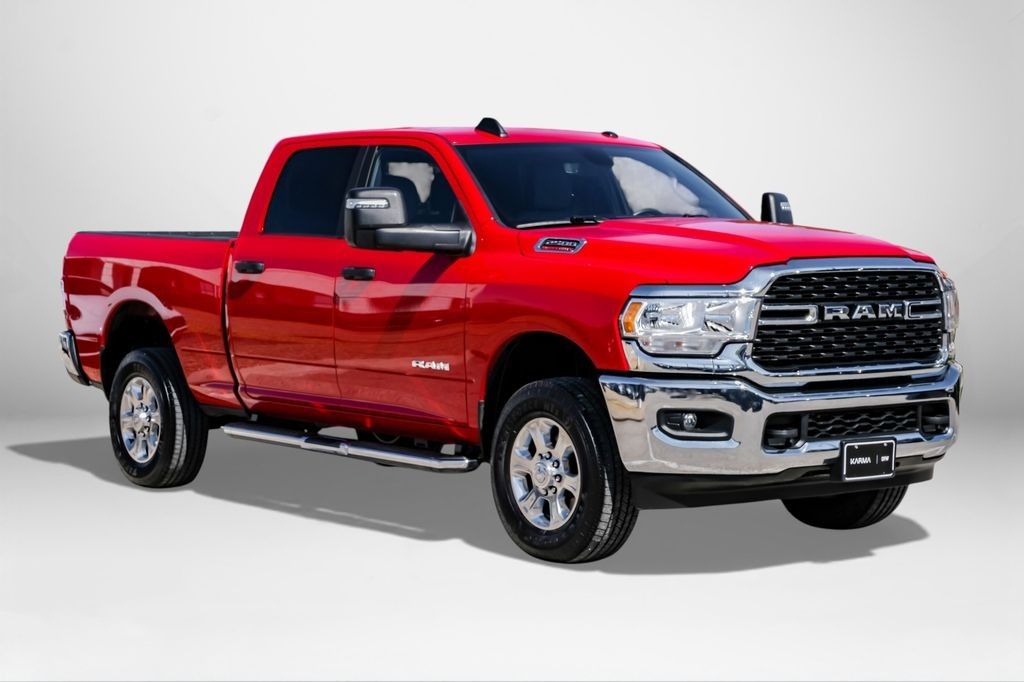 Flame Red Clearcoat 2024 Ram 2500 Big Horn 4WD 8-Speed Automatic 6.4L V8 2 Way Rear Headrest Seat, 2nd Row In Floor Storage Bins, 4 Way Front Headrests, 4-Wheel Disc Brakes, 40/20/40 Split Bench Seat, 4G LTE Wi-Fi Hot Spot, 8.4" Touchscreen Display, 9 Alpine Speakers w/Subwoofer, ABS brakes, Active Noise Control System, Air Conditioning, Anti-Spin Differential Rear Axle, Apple CarPlay, Auto Power-Folding Mirrors, Bed Utility Group, Big Horn IP Badge, Black Exterior Mirrors, Bluetooth Handsfree Phone & Audio, Brake assist, Bumpers: chrome, Center Hub, Center Stack Storage Drawer, Chrome Flat Cab-Length Side Steps, Compass, Connectivity - US/Canada, Delay-off headlights, Driver door bin, Dual front impact airbags, Dual front side impact airbags, Dual Glove Boxes, Electronic Stability Control, Electronically Controlled Throttle, Emergency communication system: SiriusXM Guardian, Exterior Mirrors Courtesy Lamps, Exterior Mirrors w/Heating Element, Exterior Mirrors w/Supplemental Signals, Foam Bottle Insert (Door Trim Panel), Footwell Courtesy Lamp, For Details, Visit DriveUconnect.com, For More Info, Call 800-643-2112, Forward & Reverse Utility Lights, Front anti-roll bar, Front Armrest w/Cupholders, Front Center Armrest w/Storage, Front Center Seat Cushion Storage, Front Fog Lamps, Front License Plate Bracket, Front reading lights, Front Seat Back Map Pockets, Fully automatic headlights, Global Telematics Box Module (TBM), Glove Box Lamp, Google Android Auto, GPS Antenna Input, Heated door mirrors, Illuminated entry, Integrated Center Stack Radio, Integrated Voice Command w/Bluetooth, Leather Wrapped Steering Wheel, LED Bed Lighting, Level 1 Equipment Group, Locking Lower Glove Box, Low tire pressure warning, Manual Adjust 4-Way Driver Seat, Manual Adjust 4-Way Front Passenger Seat, Mirror Running Lights, MOPAR Deployable Bed Step, MOPAR Spray In Bedliner, Occupant sensing airbag, Outside temperature display, Overhead airbag, Overhead console, Panic alarm, Passenger vanity mirror, Power 2-Way Driver Lumbar Adjust, Power Adjust 8-Way Driver Seat, Power Adjust Mirrors, Power Adjustable Convex Aux Mirrors, Power door mirrors, Power Heated Fold Telescope Mirrors, Power steering, Power Telescoping Mirrors, Power windows, Premium Cloth 40/20/40 Bench Seat, Premium Cloth 40/20/40 Bench Seat (DISC), Protection Group, Quick Order Package 2GZ Big Horn, Radio data system, Radio: Uconnect 3 w/5" Display, Rear 60/40 Folding Seat, Rear anti-roll bar, Rear Dome w/On/Off Switch Lamp, Rear Folding Seat, Rear Power Sliding Window, Rear seat center armrest, Rear step bumper, Remote keyless entry, Remote USB Port - Charge Only, Selectable Tire Fill Alert, SiriusXM Radio Service, SiriusXM Satellite Radio, Speed control, Steering Wheel Mounted Audio Controls, Storage Tray, Tachometer, Tilt steering wheel, Tip Start, Tow Hooks, Traction control, Trip computer, Turn signal indicator mirrors, Variably intermittent wipers, Voltmeter, Wheels: 18" x 8.0" Polished Aluminum.Recent Arrival! Odometer is 10552 miles below market average!